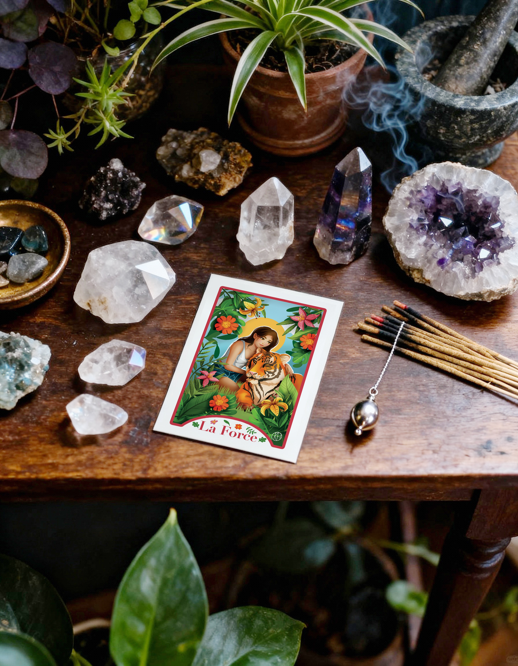 interprétation colorée et moderne de la carte du tarot “LA FORCE”